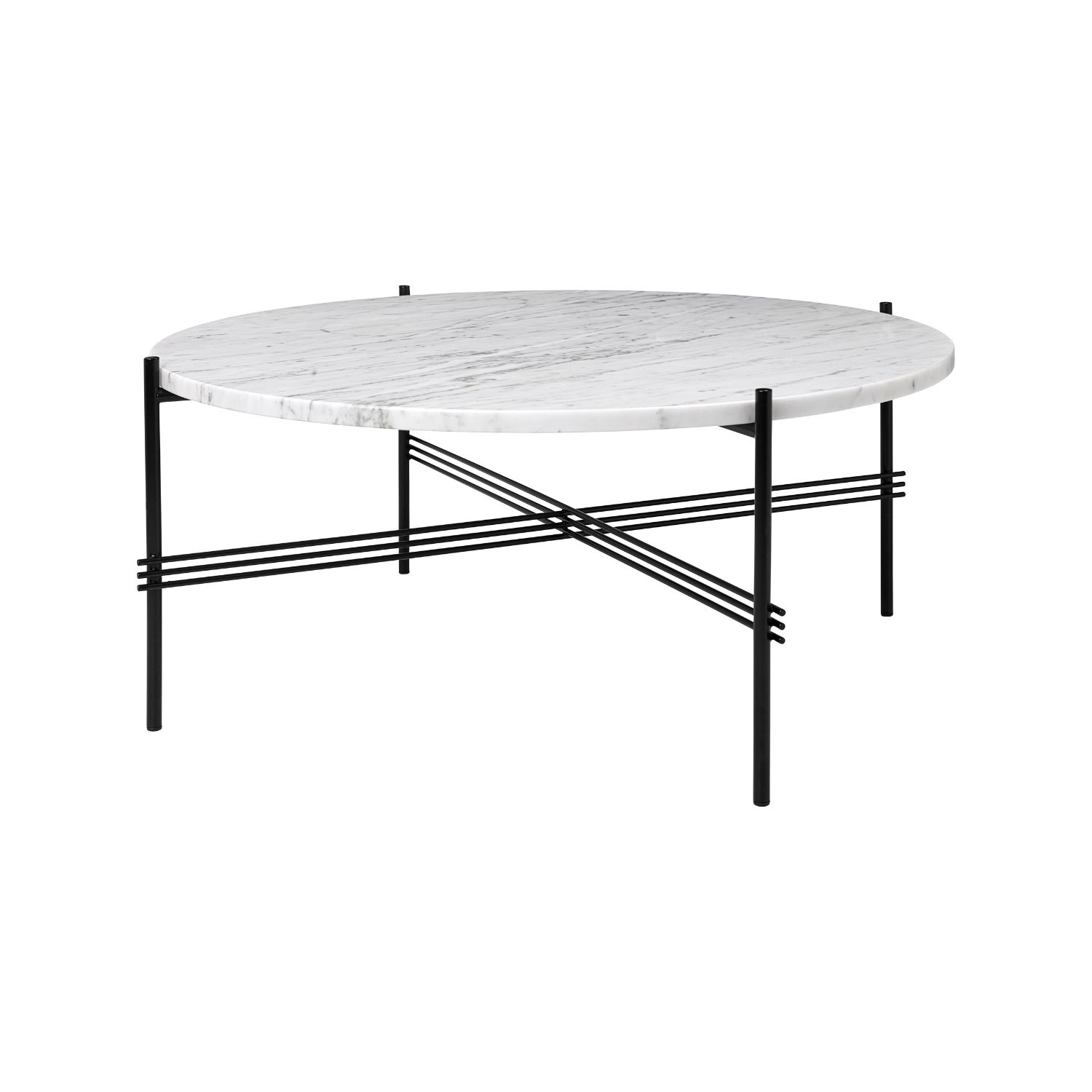 GUBI TS-sohvapöytä Ø80cm, Carrara-marmori/musta metalli