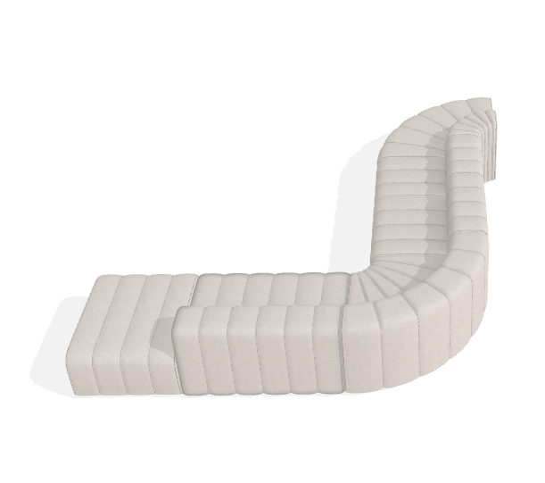 Koko: leveys 325 cm, syvyys 361 cm, korkeus 73 cm, istuinkorkeus 47 cm